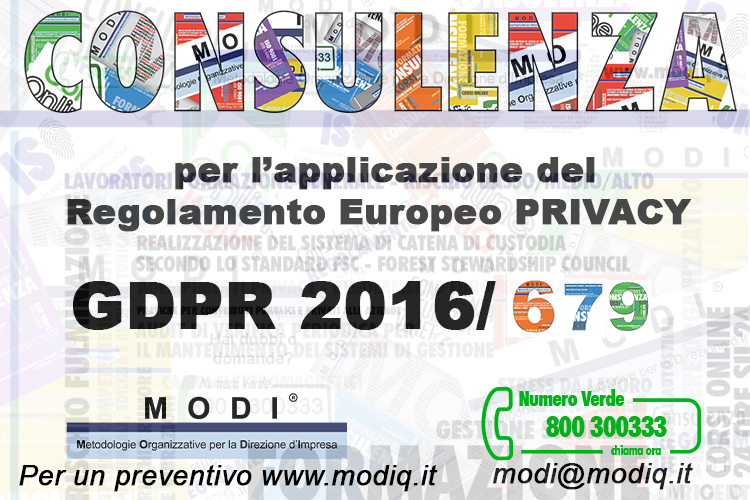 MODI SRL si propone ai Datori di Lavoro interessati ad avere una Consulenza sugli adempimenti PRIVACY secondo il Regolamento Europeo GDRP 2016/679.