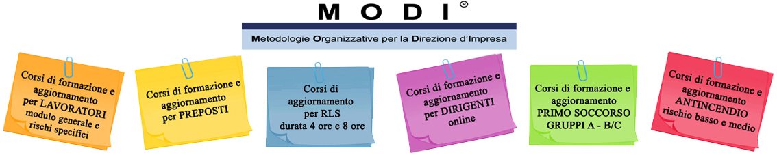 Per consulenze in materia di salute e sicurezza nei luoghi di lavoro, analisi dei fabbisogni formativi e documentali, iscrizione ai corsi e partecipazione ai seminari chiamare il numero verde 800300333. I siti internet di MODI SRL sono qui di seguito elencati: