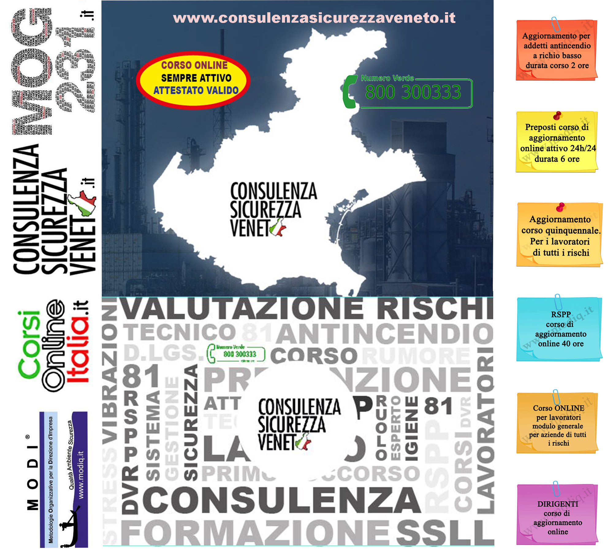 Per consulenze, iscrizione ai corsi e partecipazione ai seminari chiamare il numero 0415412700 o visitate i nostri siti www.mog231.it; www.modiq.it, www.consulenzasicurezzaveneto.it, www.corsionlineitalia.it, www.consulenzaprivacyregolamentoue679.it e www.consulenzacertificazioneiso37001.it/. E-mail MODI NETWORK modi@modiq.it.